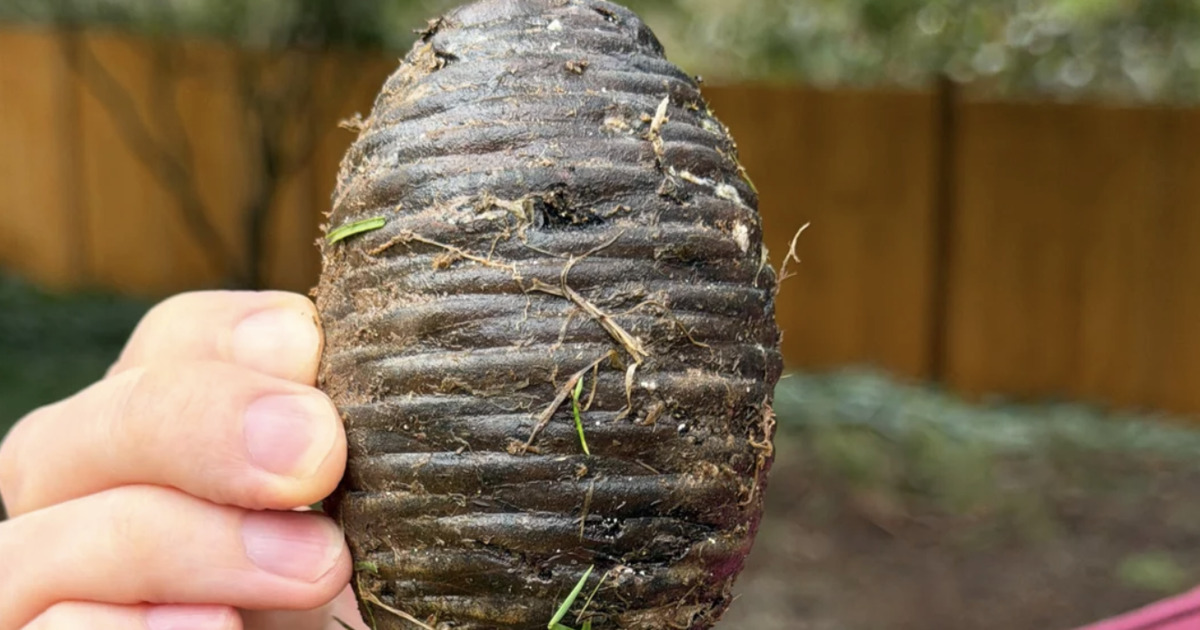 Its size is one reason for how surprisingly heavy it initially appears. The round, large shape and deep texture are also part of what make it appear as if it has been buried for years rather than having grown tall in trees above. This then explains the mystery: this is a deodar cedar cone. Packed-in dirt, age, and moisture all help contribute to the additional visual darkness, density. These are two things that make a deodar cedar cone somewhat unusual. A deodar cedar cone typically does not appear light or delicate when it drops from the tree. Instead, it will often appear to be solid, heavy and almost sculptural, which is probably why people notice it immediately.