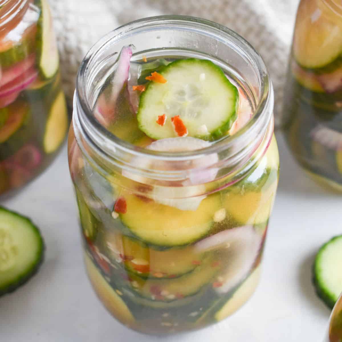 Enjoy sweet heat pickles in moderation, as they are high in sugar and sodium. If you have allergies to mustard seeds, celery seeds, or peppers, avoid this recipe or substitute with safe alternatives. Always consult with your healthcare provider if you have dietary restrictions.