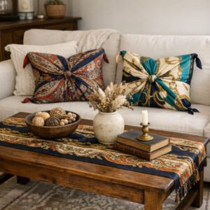 Incorporate vintage scarves into your home décor by transforming them into pillow covers or table runners. To create a pillow cover, fold the scarf in half, place the pillow inside, and tie the corners of the scarf at the center for a bohemian-chic look. This method is not only easy but also allows for quick changes when you want to switch up your décor.