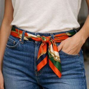 For a more structured look, thread the scarf through the belt loops of your jeans or trousers. Scarves measuring 50 inches or longer are ideal for this purpose, providing enough length to comfortably wrap around your waist and tie securely.