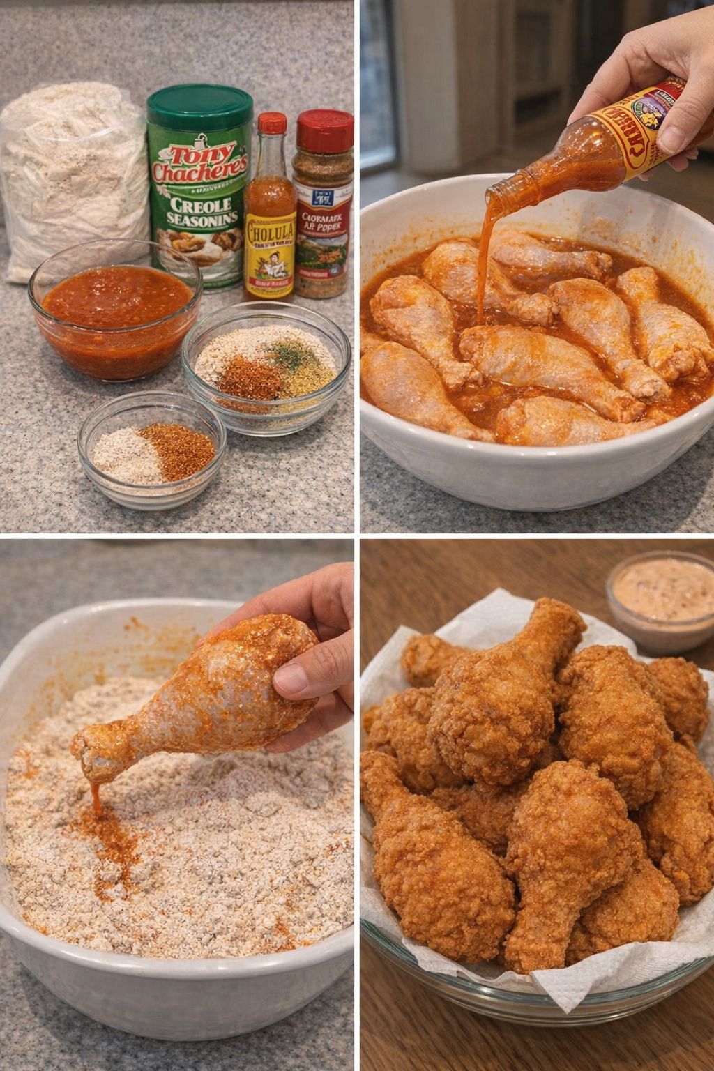 Dredge the chicken in the flour, back to the mixture it was marinating in and then back into the flour.