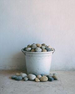 For a different look, consider using a variety of stone colors such as white, black, or brown to create patterns or ombre effects. You could also paint the stones before application for a more colorful approach. If you prefer a more rustic look, you can use larger stones or mix in pebbles. Additionally, try using different shapes of buckets or containers to create planters of various sizes and styles.