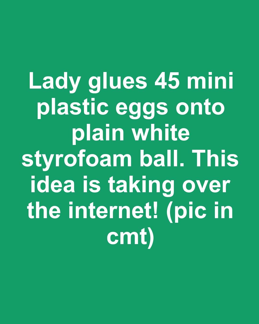 Begin by adhering the mini plastic eggs to the Styrofoam ball, starting from the top and working your way down. Apply a small amount of hot glue to each egg and press it firmly onto the ball.