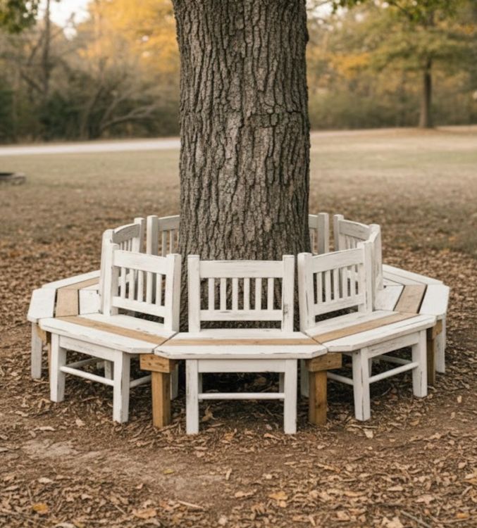 For a different look, consider using mismatched chairs for an eclectic style. You can also experiment with different colors of paint or stain to match your garden’s color scheme. If your tree is large enough, you might add a small table in the center for drinks and snacks. For those who prefer a more rustic look, consider using reclaimed or vintage chairs. Adding a hammock or hanging chair nearby can also provide additional seating options and enhance the relaxing vibe.