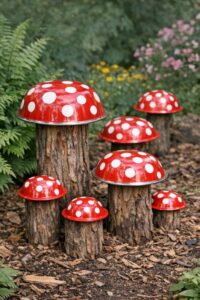 These DIY garden toadstools work beautifully in a variety of outdoor settings. Arrange them in clusters of varying heights for a natural look or place them strategically along a garden path to guide visitors with a touch of whimsy. They can also be scattered throughout a flowerbed, adding pops of color among the greenery. Consider pairing these toadstools with fairy lights or other garden ornaments to create a cohesive fantasy theme.