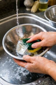 Clean the stainless steel bowls thoroughly to remove any labels or residues.