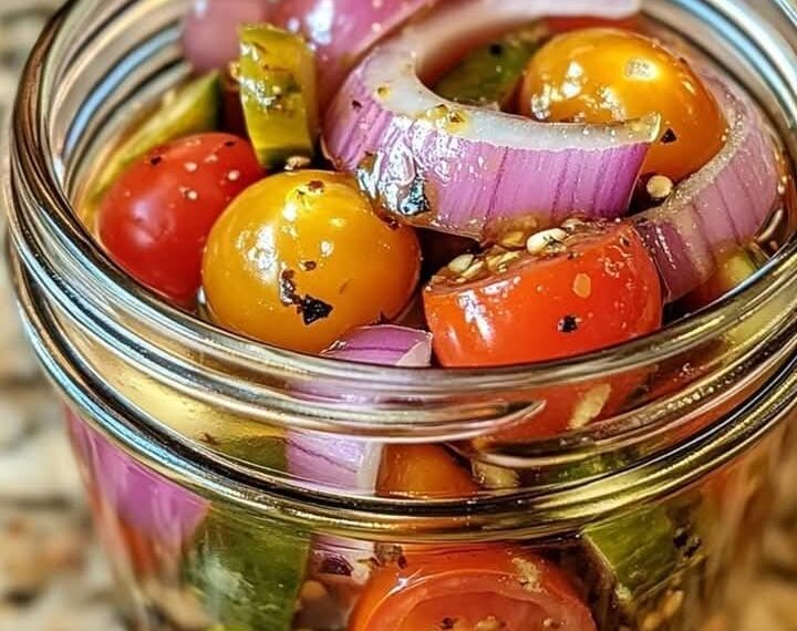 Pickled Cherry Tomatoes, Red Onions, and Cucumbers