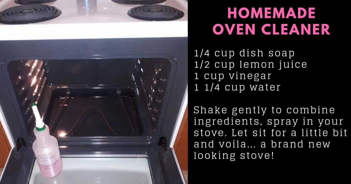 All you have to do is add these ingredients into a spray bottle and shake gently to combine. Spray the solution in your stove (including on the inside of the door), then let it sit for a little while. Use a damp cloth to wipe off the solution, and your stove will be looking like a million bucks. Pretty simple, right?