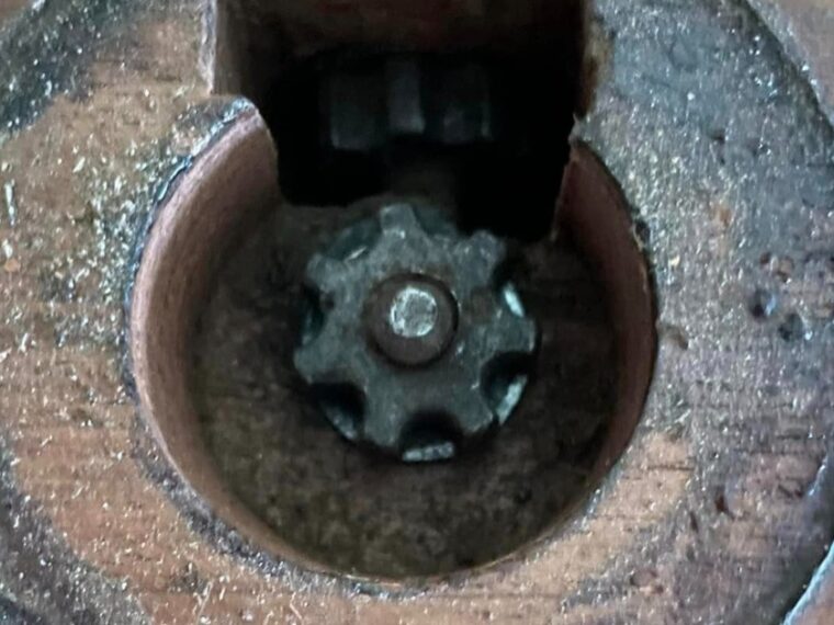 We just stared. Is there a stair post that has a gear in it? Was it part of a lock? A trigger? Some kind of secret feature hidden in a newel post compartment?