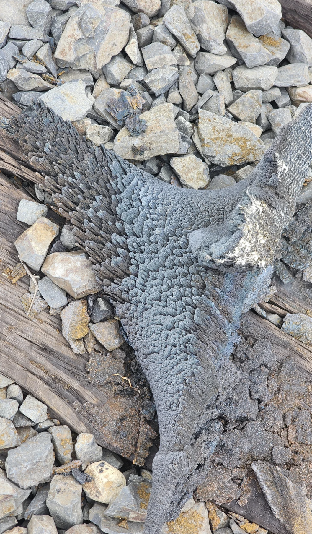 Rail grinding machine residue does not resemble ordinary scrap metal. Rail grinding machine residue has an appearance of layers or flakes, as if it were living. It resembles coral rather than steel. This is due to how it forms through compacted grinding debris, heat, and oxidation over time.