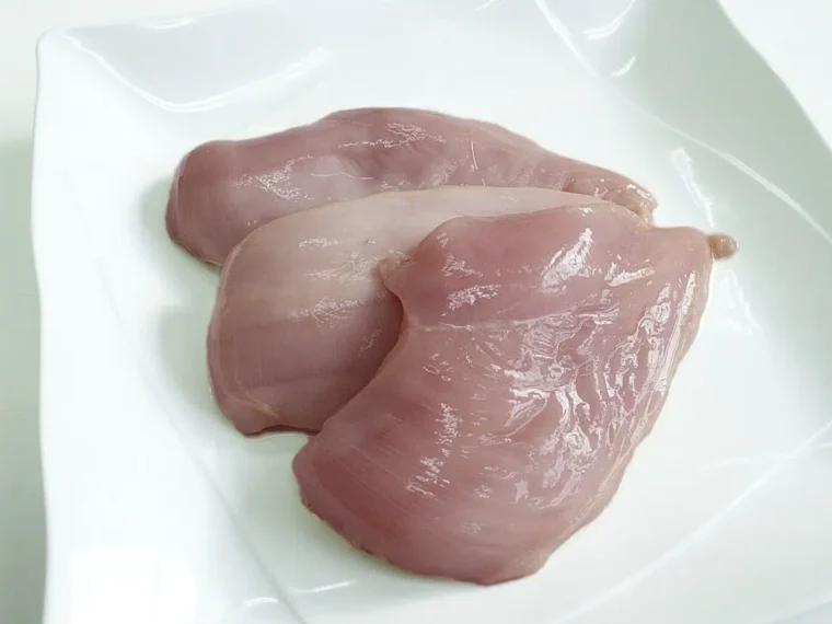 Chicken muscle fibers contract as they cook. This shrinking action drives moisture to the surface. The heat causes the proteins in the water to coagulate, pulling together by bonds not unlike those that hold together albumin, or the type of protein there is in egg white, and it comes together in that little white goo you sometimes find.