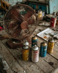 Once the primer is dry, spray the fan with your chosen color of spray paint. Apply multiple light coats for an even finish, allowing each coat to dry before applying the next.