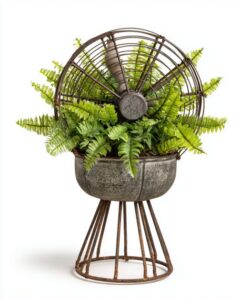 The Vintage Fan Planter can be styled in various ways to complement your garden’s aesthetic. Place it among lush greenery to create a striking contrast or position it as a focal point on a patio or deck. Its rustic appeal pairs well with other vintage or industrial elements, such as metal chairs or reclaimed wood tables. For a cohesive look, consider incorporating other upcycled items, like old watering cans or repurposed lanterns, to enhance the vintage theme.
